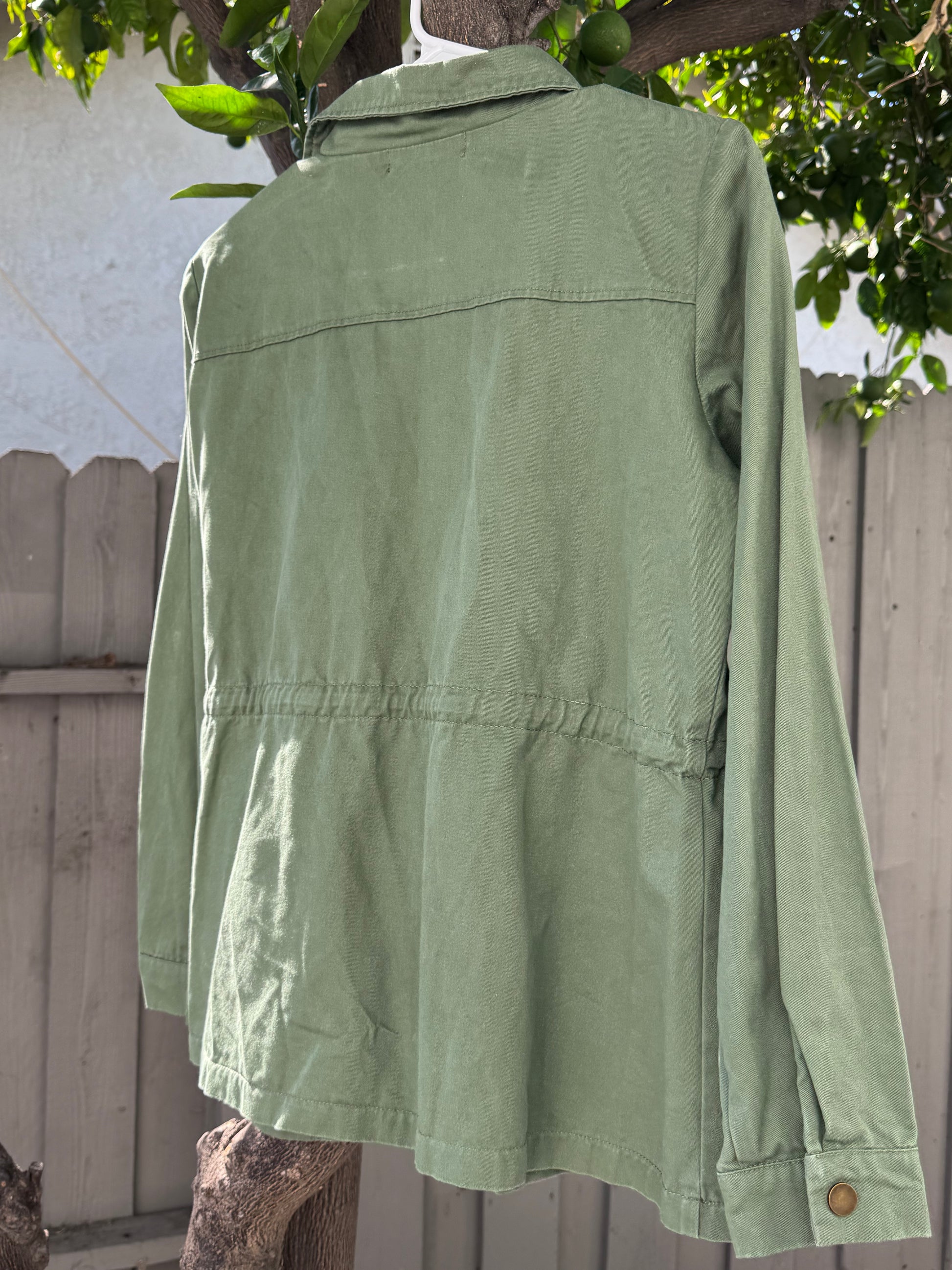 Allegra K Green Utility Jacket with Cat Patch Sz M