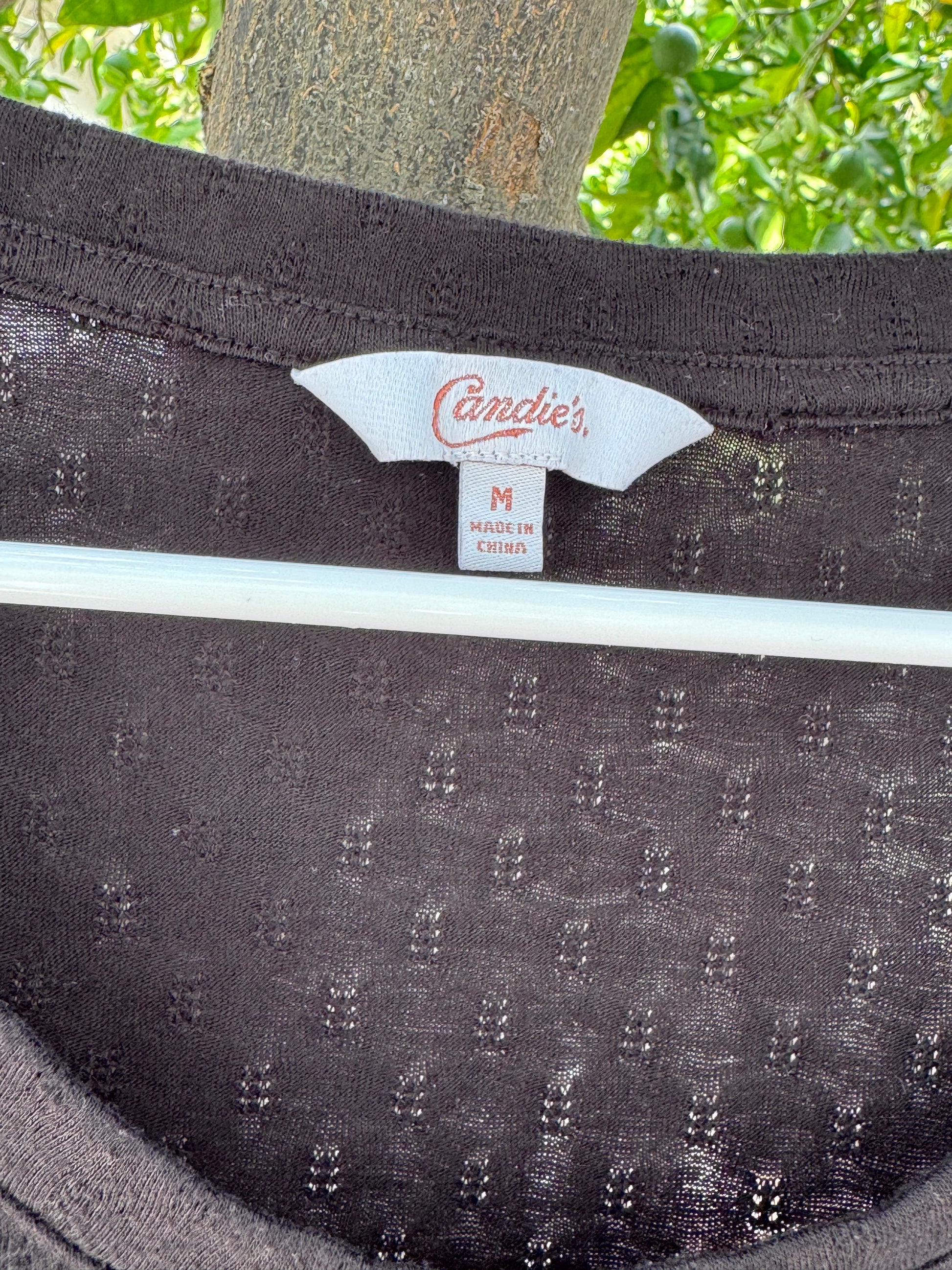 Candie’s Black Short Sleeve Twist-Front Tee – Size M