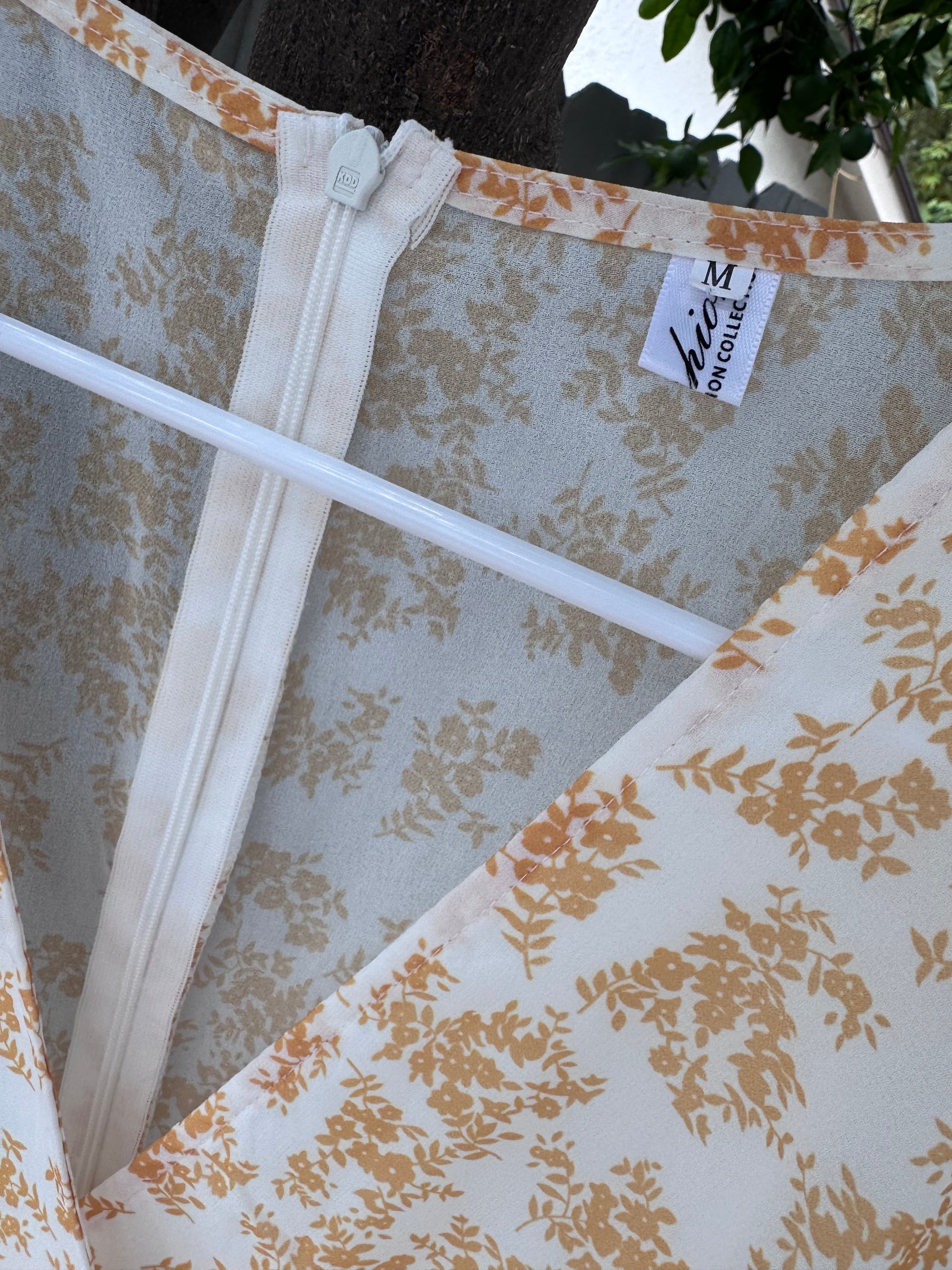Chic by Fashion Collection White & Mustard Floral Long Sleeve Romper – Size M