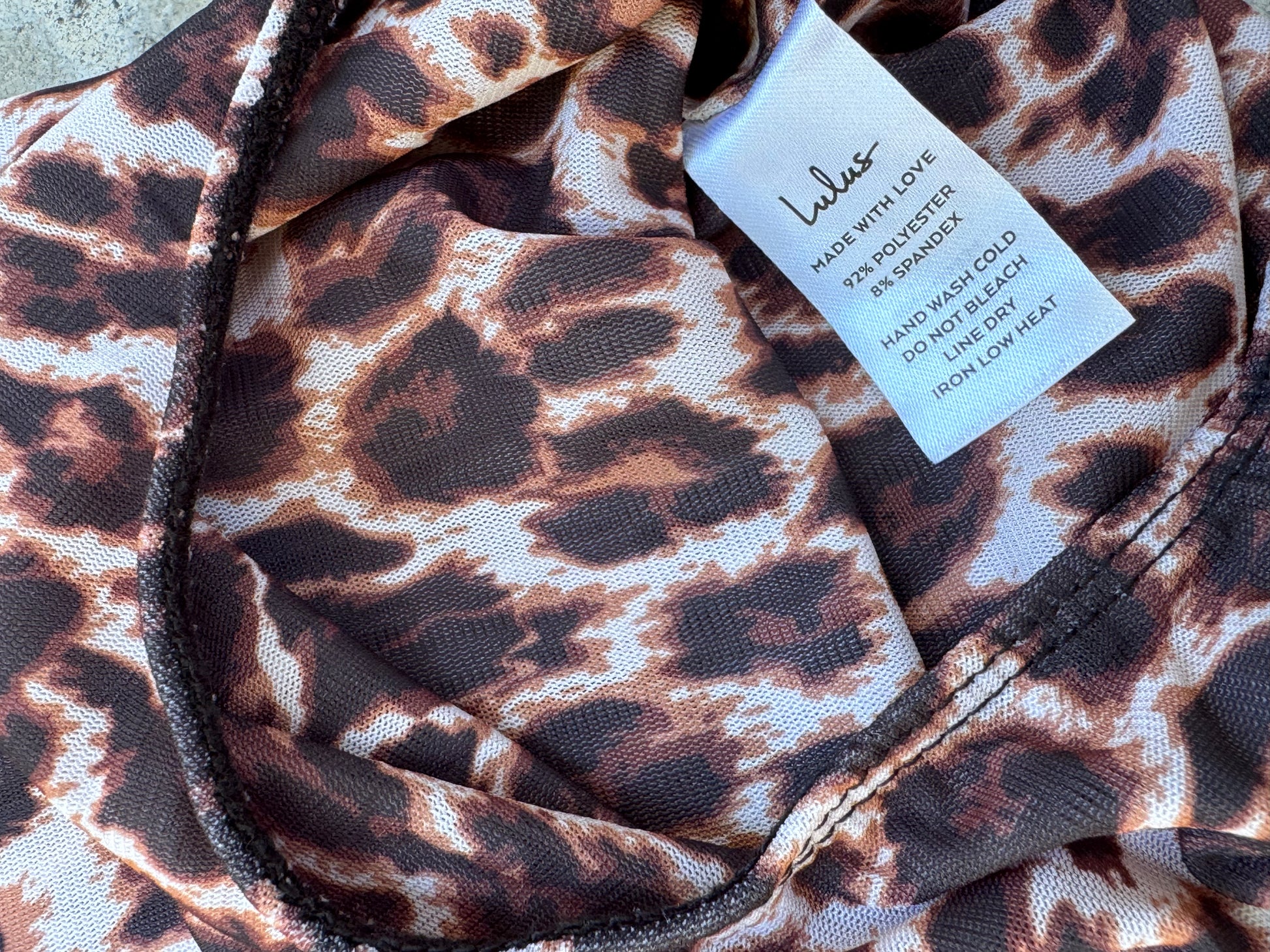 Fierce and stylish, this Lulus one-shoulder bodysuit features a bold brown and black leopard print that adds a statement touch to any outfit. Soft stretch fabric (92% polyester, 8% spandex), and convenient snap closure at the bottom. Perfect for pairing with jeans, skirts, or layering for a night out look. Size Medium. Excellent condition.