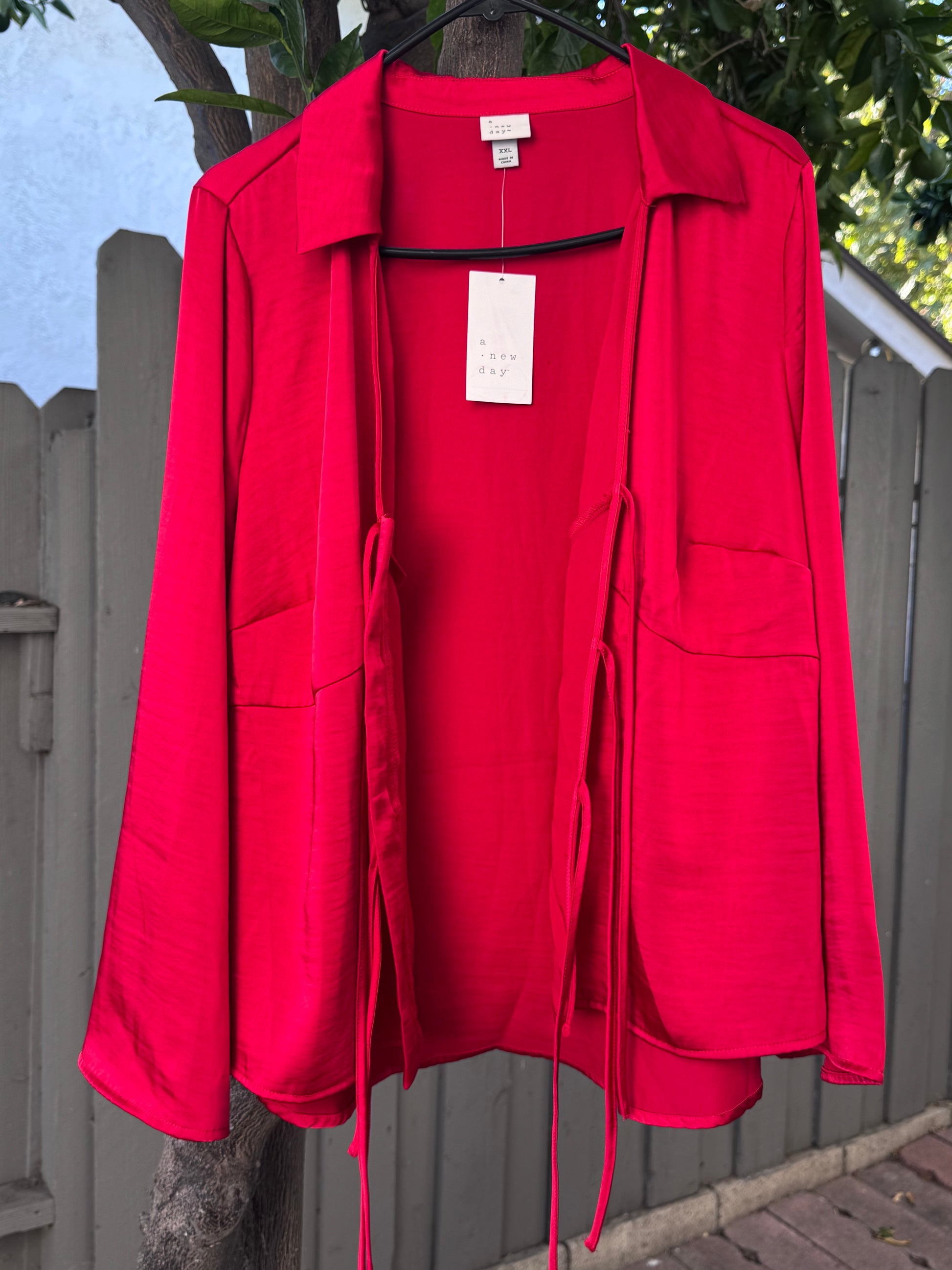 NEW A New Day Tie-Front Bright Red Satin Blouse Sz 2X