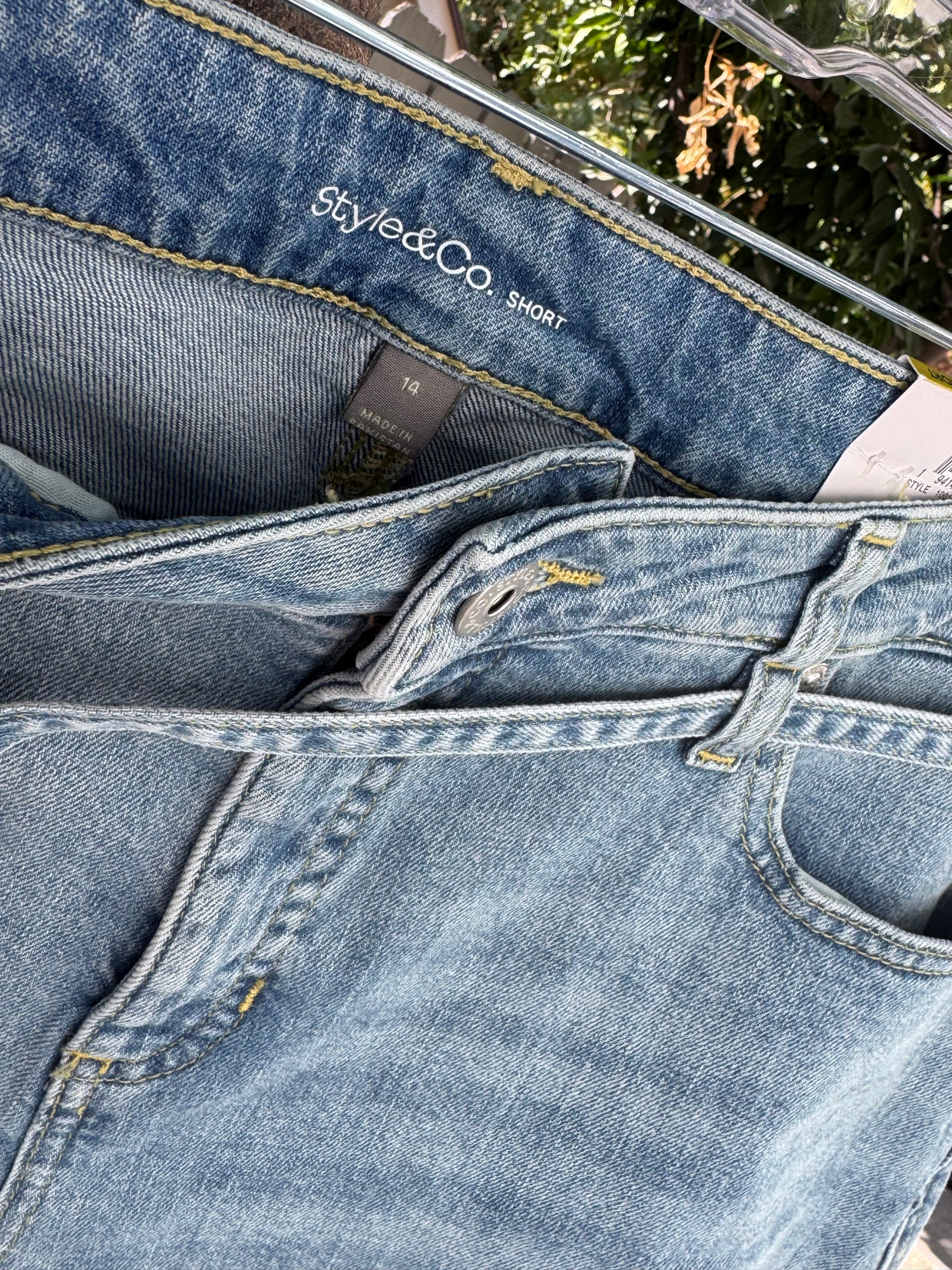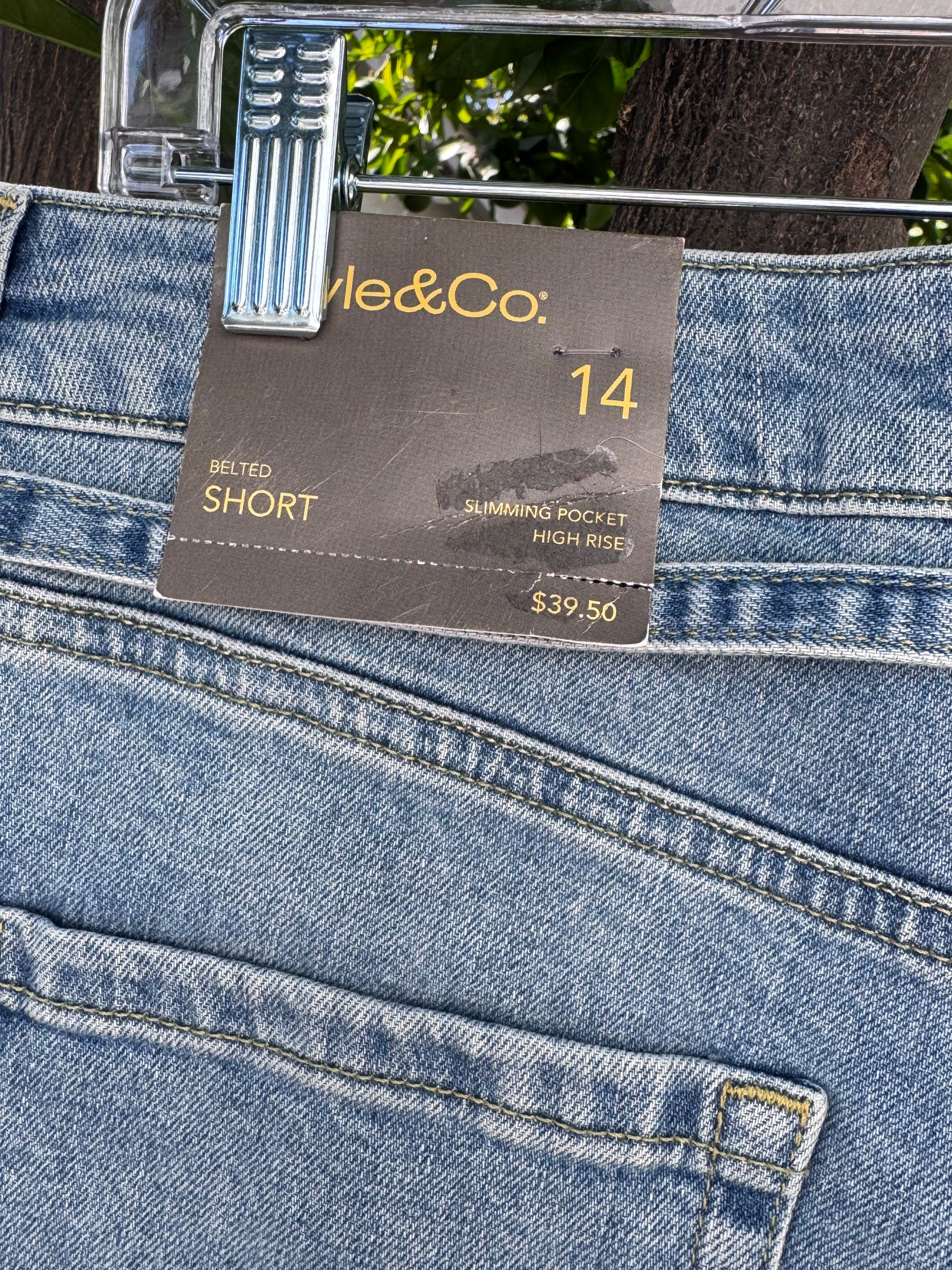 NEW Style & Co High Rise Belted Denim Shorts Women’s Sz 14