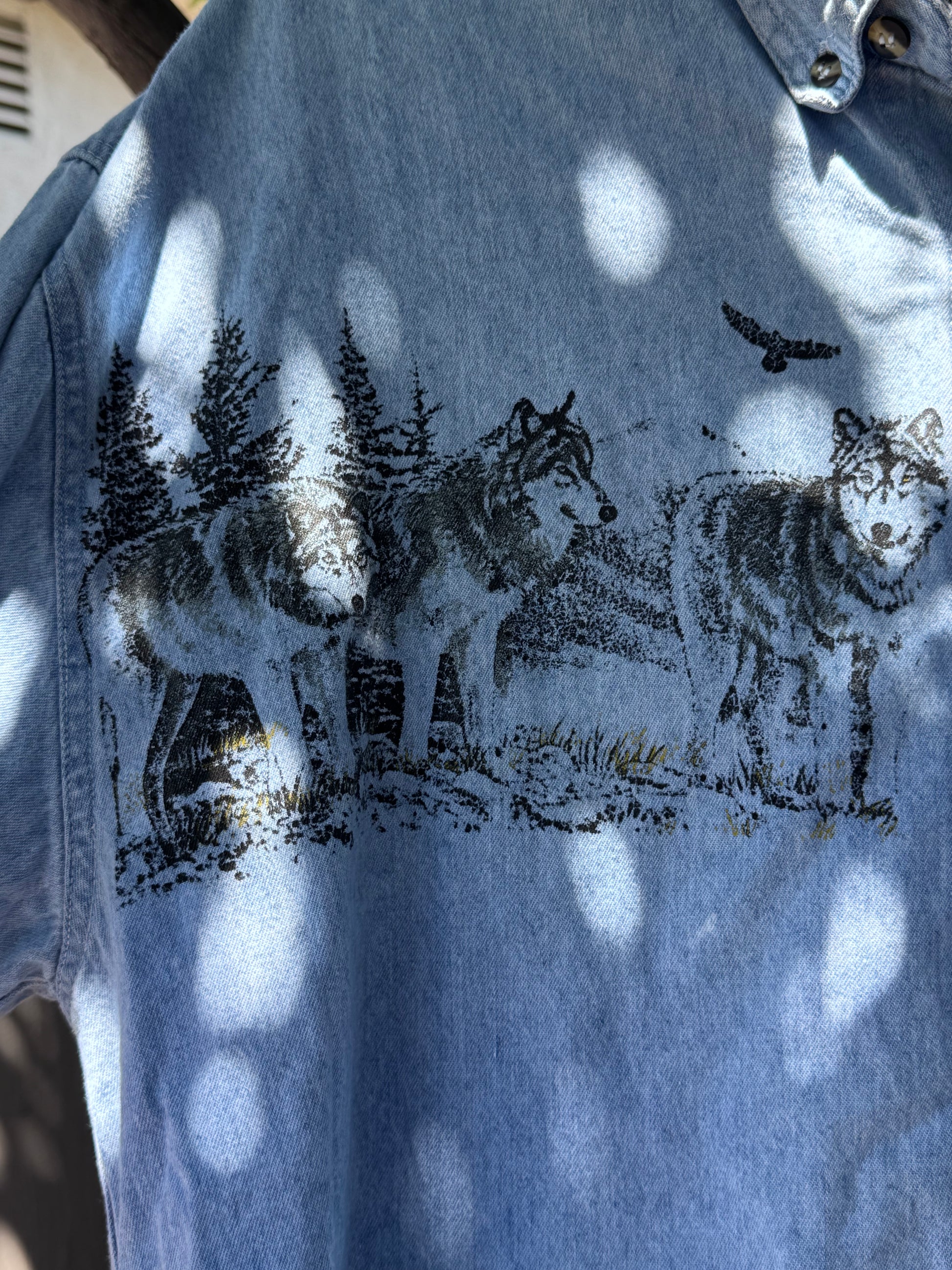 Vintage Wolf Graphic Denim Shirt 1990s Most Wanted Sz XL