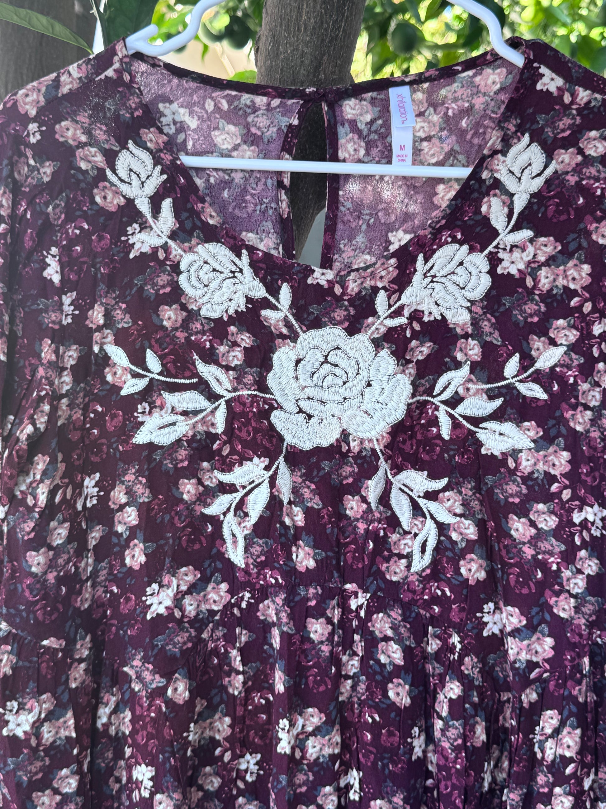 Xhilaration Burgundy Floral Embroidered Boho Dress – Size M